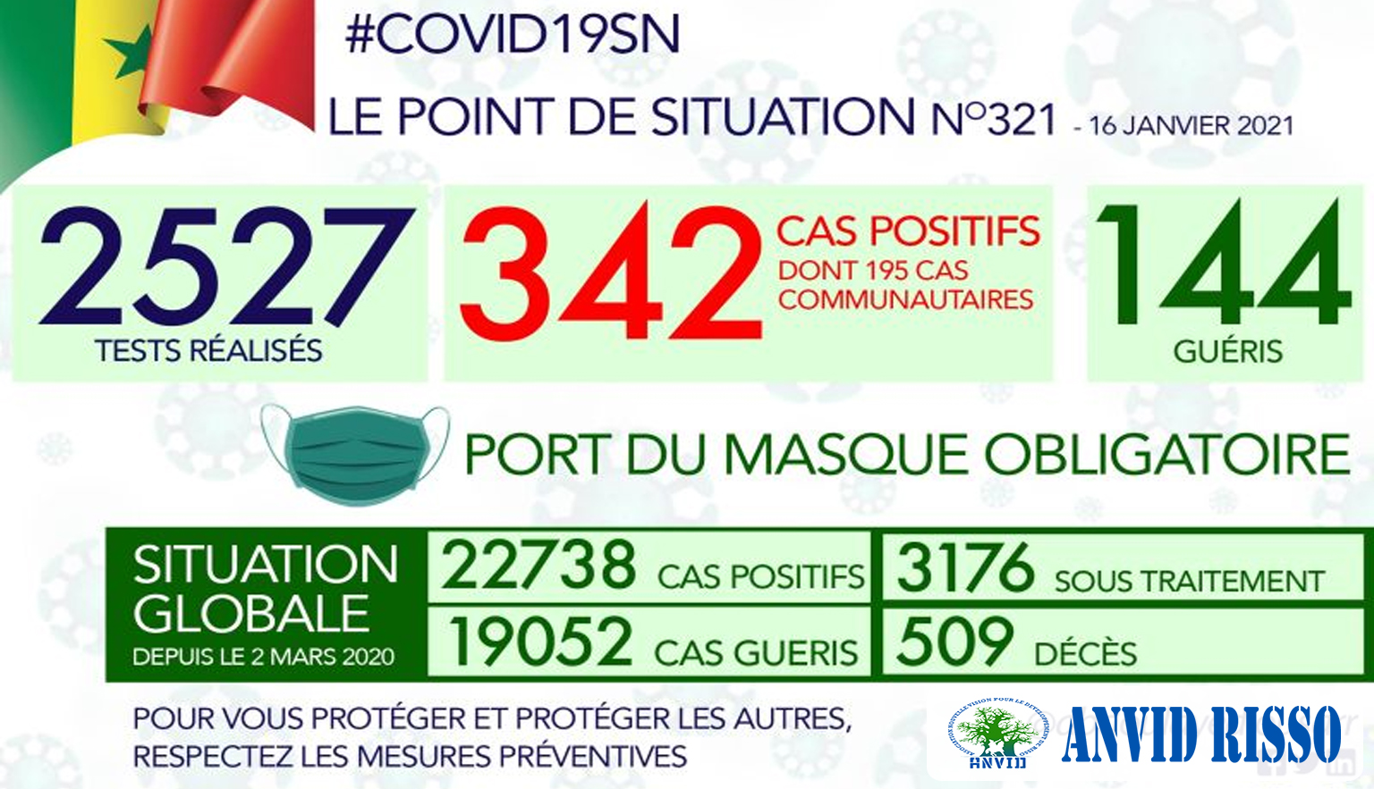 Point Covid 19 : 342 NOUVEAUX CAS POSITIFS ET 144 GUÉRIS, CE SAMEDI