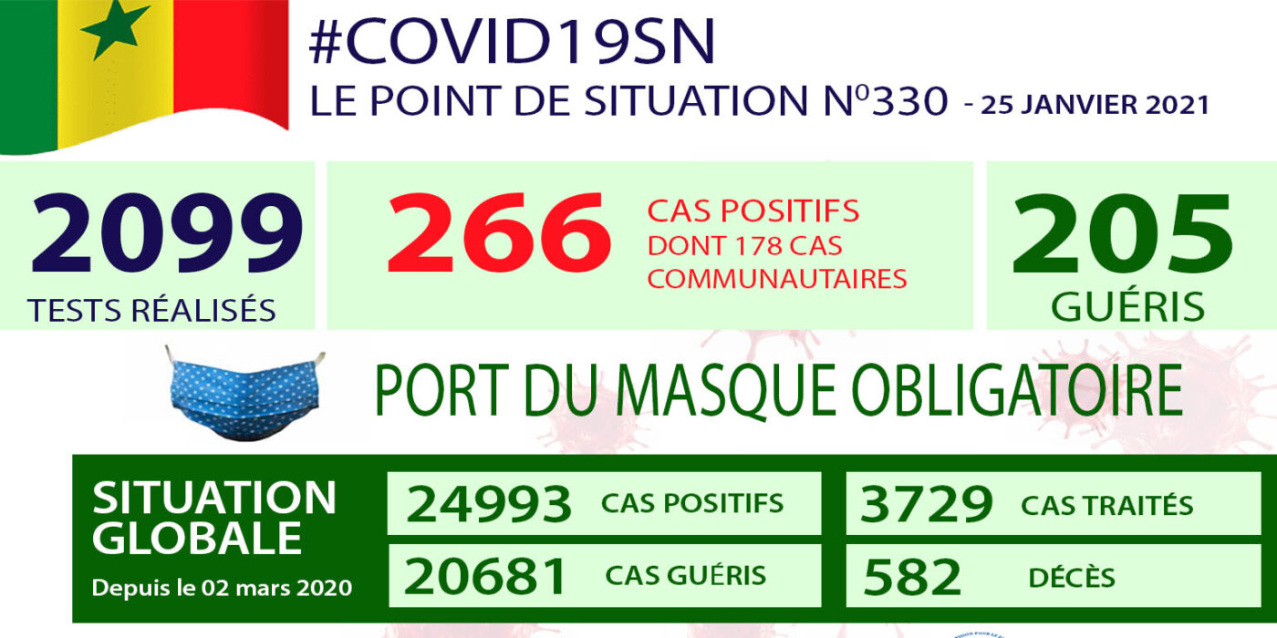 Le Sénégal compte désormais 24.993 cas de Covid-19 pour 20.681 personnes guéries de la maladie.