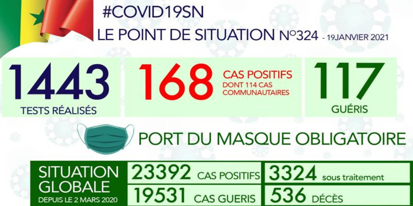 Ce mardi 19 janvier 2021, sur 1443 tests Covid-19 effectués 168 en sont revenus positifs soient  11,64%. Il s’agit de 54 cas contacts, d’un cas importé et 114 cas communautaires.